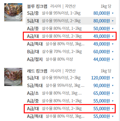 첫번째, 오늘의 킹크랩 시세를 확인하고갑니다.