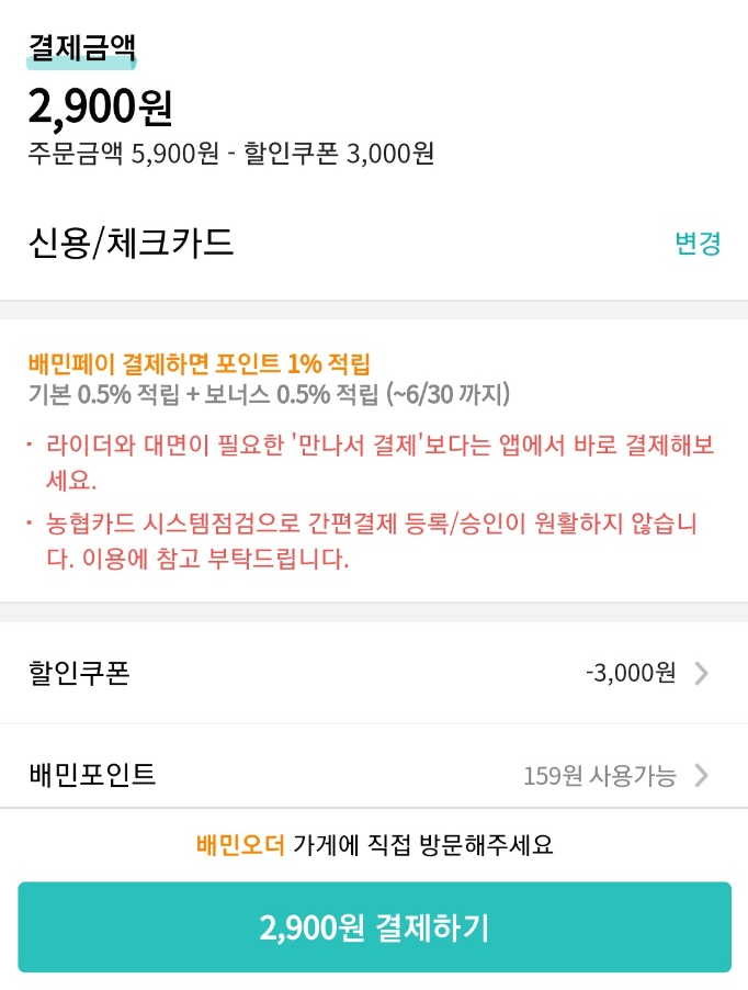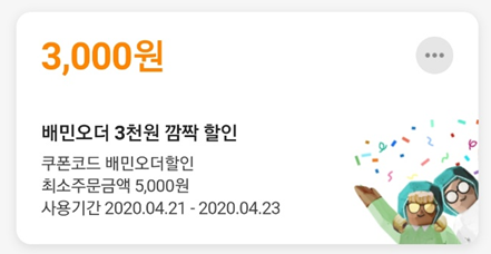 배달의민족에서 배민오더 3,000원 할인 쿠폰을 지급합니다.