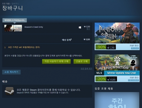 어쌔신크리드 유니티 120달러 아니 120원입니다.